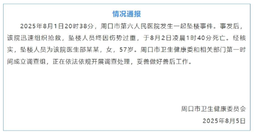 周口市女医生坠亡引关注,网暴相关调查进行中